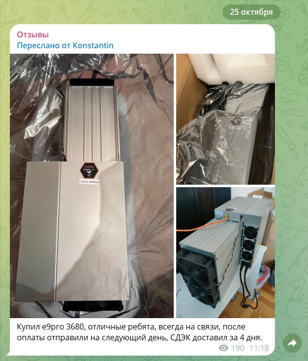 Наша компания занимает лидирующие позиции по поставке майнинг оборудования в РФ и РБ. Работаем с 2017 года.