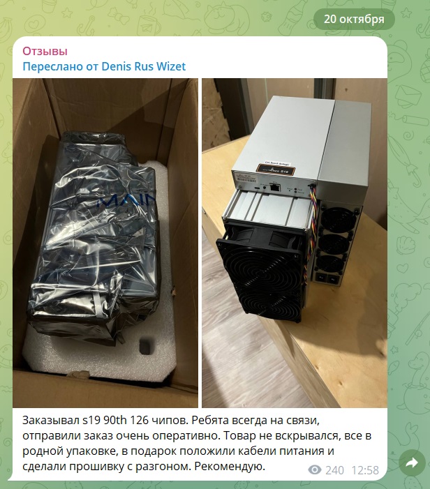 Мы поставляем оборудование для майнинга от ведущих производителей, таких как Bitmain, Iceriver, iPollo, Whatsminer и т.д. За это время более 10000 клиентов начали строить успешный майнинг-бизнес на нашем оборудовании, предлагаем начать и Вам!